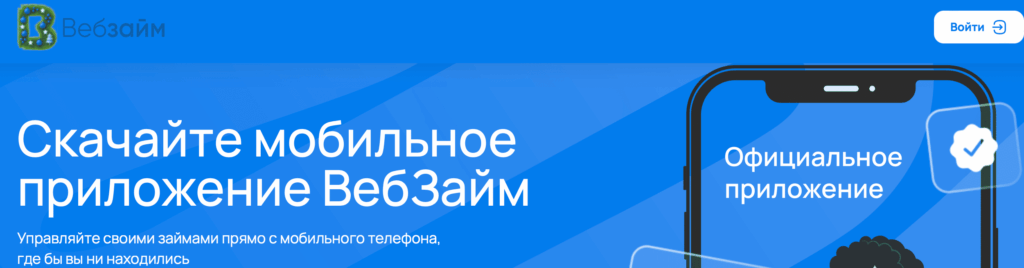 ВебЗайм — микрофинансовая организация, предоставляющая онлайн-займы на карту и банковский счёт. Для удобства клиентов компания предлагает мобильное приложение, которое позволяет управлять займом без использования браузера. Через приложение можно подать заявку, отслеживать статус договора, вносить платежи и получать уведомления. Мобильный сервис подходит как новым, так и постоянным заемщикам и обеспечивает доступ к услугам Веб-Займ в любое время.