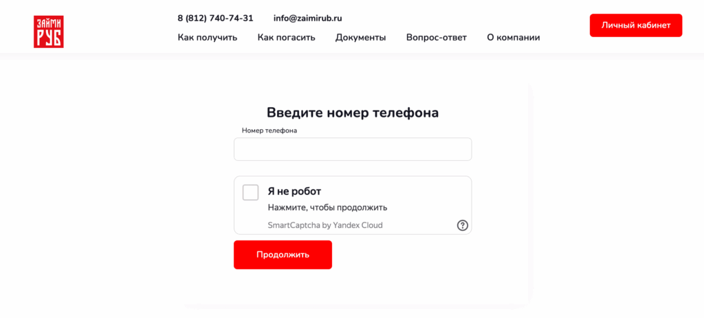 Для входа в личный кабинет ЗаймиРУБ используется ваш номер телефона, указанный при оформлении займа. После ввода номера на сайте или в мобильном приложении приходит SMS‑код подтверждения, который необходимо ввести для идентификации. Такой способ входа обеспечивает безопасный доступ и защиту персональных данных. Через личный кабинет вы сможете видеть состояние всех займов, график платежей и доступные услуги.
