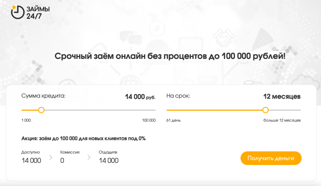 Сервис Займы 24/7 — это онлайн-площадка подбора займов, которая передает данные пользователя партнёрским кредиторам после заполнения анкеты. Платформа не выдает деньги самостоятельно и не удерживает комиссию за подбор предложений. Пользователь может получать рекламные предложения и уведомления после отправки заявки. Согласие на обработку персональных данных дается при заполнении формы. Его можно отозвать в любой момент через специальную форму отказа.